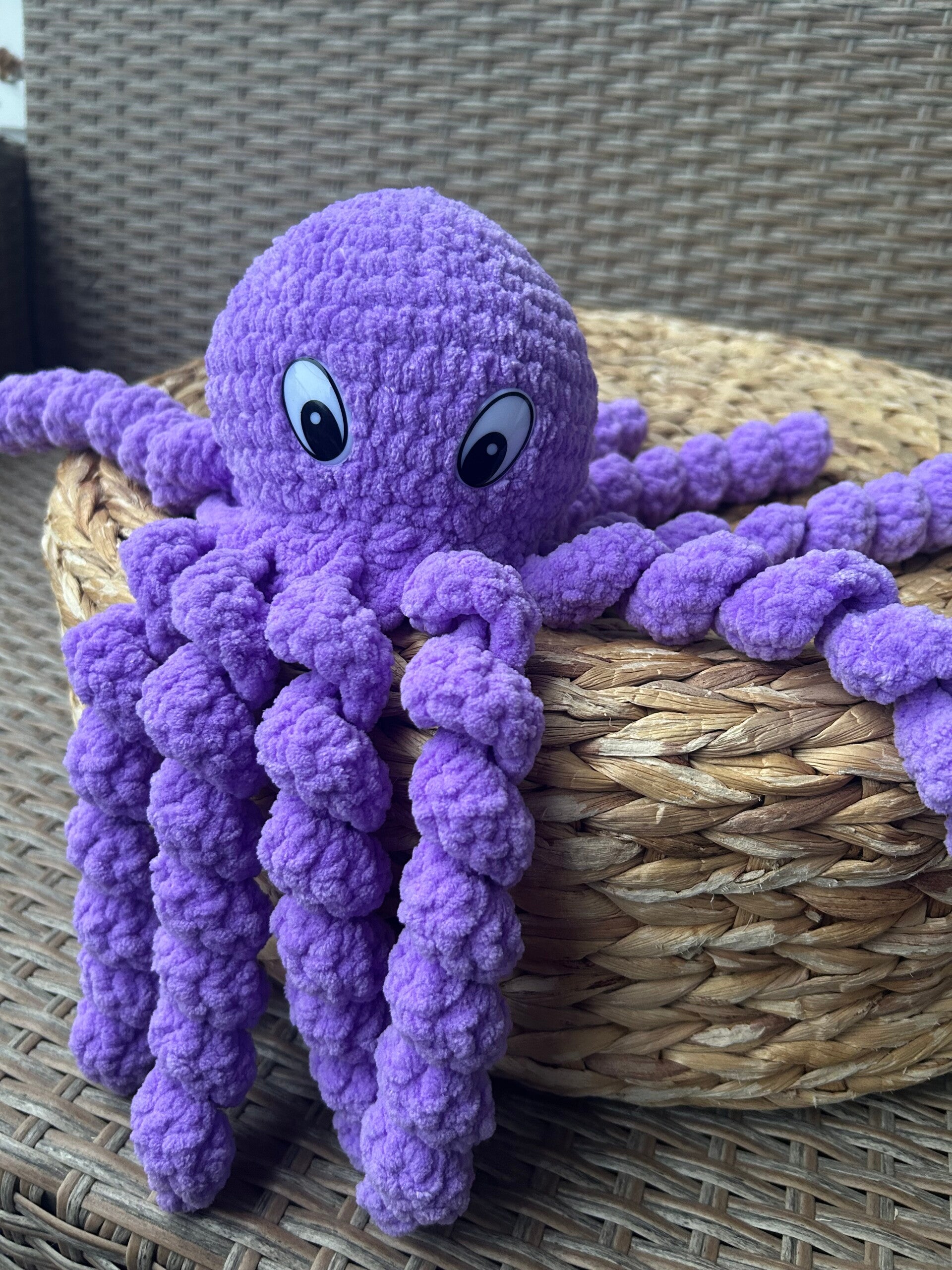 Tämä suloinen mustekala on virkattu 100% polyesterilangasta. Langalla on OEKO-TEX -sertifikaatti.